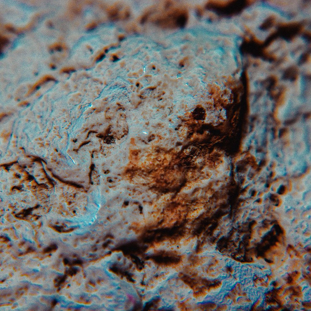 The Crumblefields stretch across a wide interior zone of the Splinter Belt, where once-solid formations have degraded into unstable, porous masses. The surface is riddled with voids and microfractures, suggesting prolonged stress rather than a single catastrophic event. Dark mineral deposits—or possibly foreign particulates—have settled into the cavities, forming irregular patterns that resemble decay. Traversal is strongly discouraged; several probes have partially collapsed into the substrate with minimal pressure.